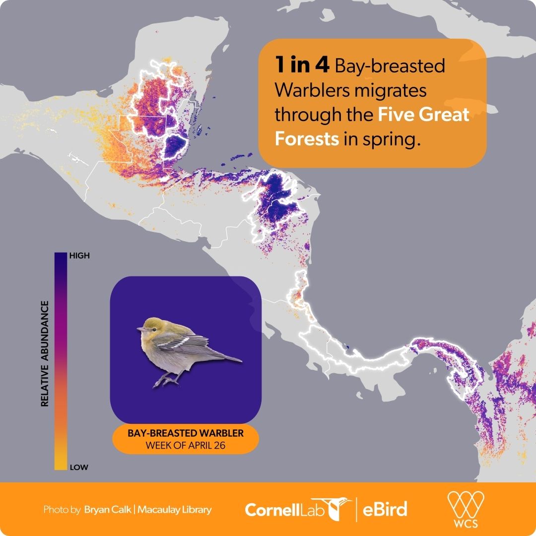 A teacher in Honduras logging a warbler sighting connects directly to abundance models that guide habitat protection from Canada to Costa Rica. People living in the Five Great Forests are contributing data on birds in their own communities, feeding into continental-scale conservation decisions.