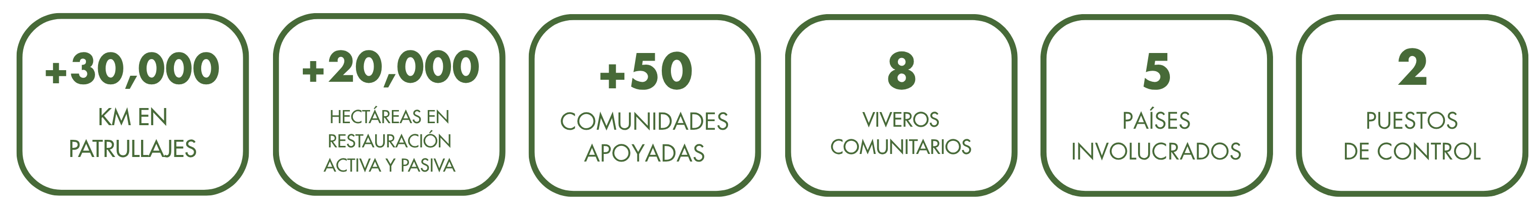 A continuación, se presentan algunos de los principales resultados de esta iniciativa: personas que restauran el bosque y producen plantas en viveros comunitarios, que recorren miles de kilómetros para patrullar e identificar amenazas, y que, desde lo cotidiano, hacen posible la conservación.