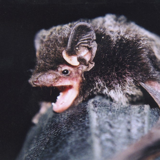 The Northern Myotis (Myotis septentrionalis) is superficially similar to the Little Brown Myotis, but has longer ears and a more pointed tragus (a projection in front of the ear canal). Northern Myotis are residents of the boreal forest and mountains. How far north this species ranges in western Canada is still not known, but they are found in the Yukon and Northwest Territories.