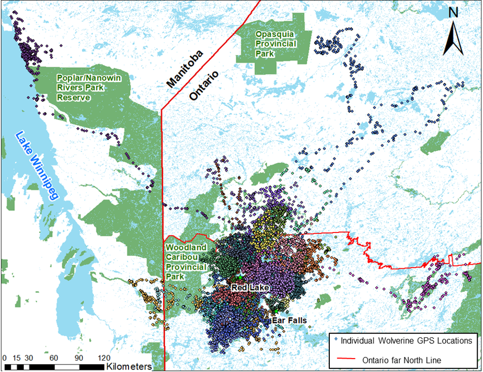 - Documenting the spatial and temporal characteristics of wolverine harvest refugia in Manitoba and Ontario (in collaboration with the Government of Manitoba).