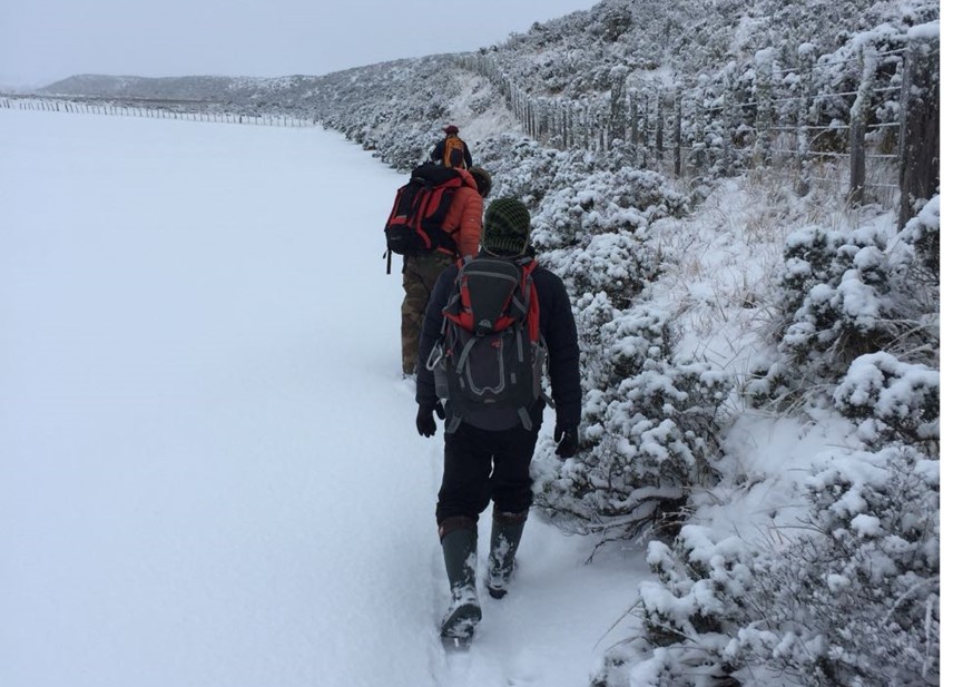Guardaparques de Karukinka apoyando labores de monitoreo de fauna