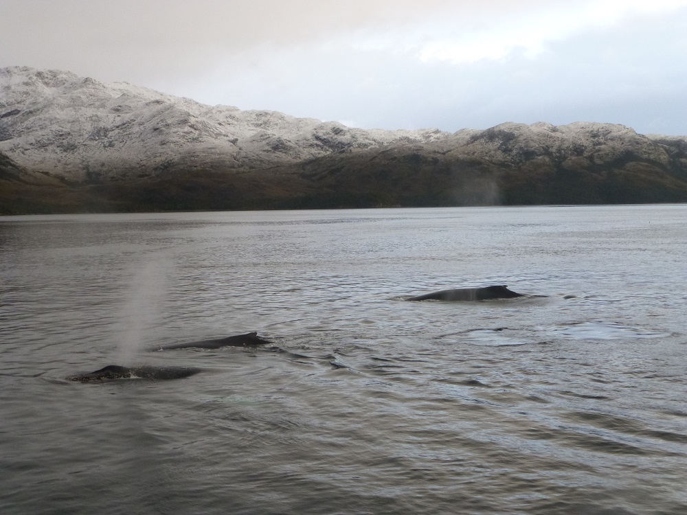 Ballenas jorobadas en el área marina protegida Francisco Coloane. @RodrigoGuijón/WCS