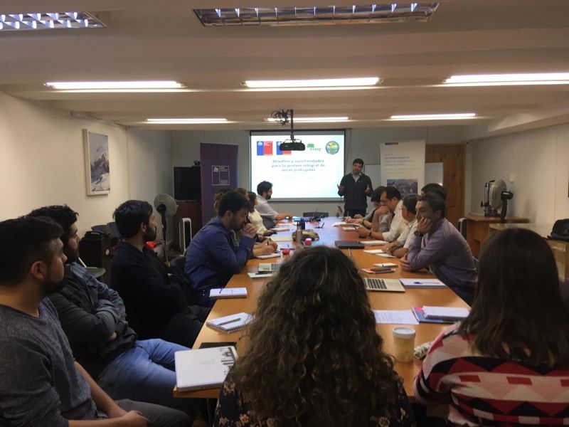 Las áreas protegidas terrestres y marinas no pueden gestionarse independientes de su entorno, pues en muchos casos éstas colindan entre sí y es necesario integrar sus acciones de conservación. Por ello, a fines de marzo se llevó a cabo la primera jornada de trabajo sobre “Elaboración de planes de manejo de áreas protegidas terrestres y marinas de Magallanes” convocada por la Corporación Nacional Forestal (CONAF) y Seremi de Medio Ambiente de la Región de Magallanes y de la Antártica Chilena, en la cual participaron la Coordinadora del Parque Karukinka, Melissa Carmody, y el Coordinador del Programa de Conservación Marina de WCS Chile, Rodrigo Guijón.