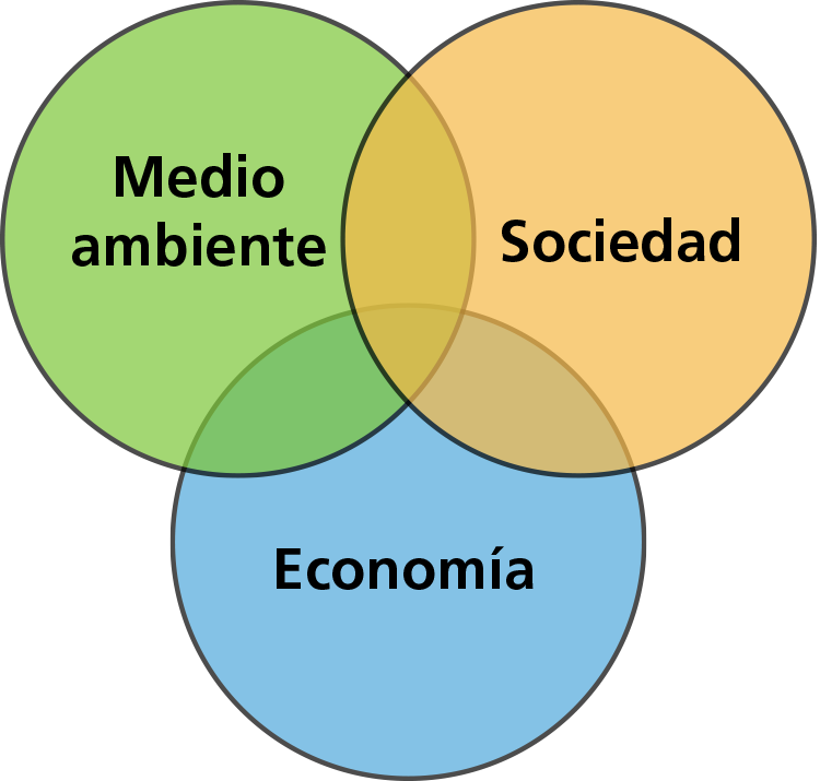 Profundicemos un poco en la forma en que hemos operativizado el concepto de desarrollo sostenible, para su aplicación práctica. Probablemente el modelo más popular para conceptualizar la sostenibilidad es el de “triple resultado”, en que la sostenibilidad se visualiza como un “equilibrio” entre tres ámbitos temáticos: el económico, el social y el ambiental.