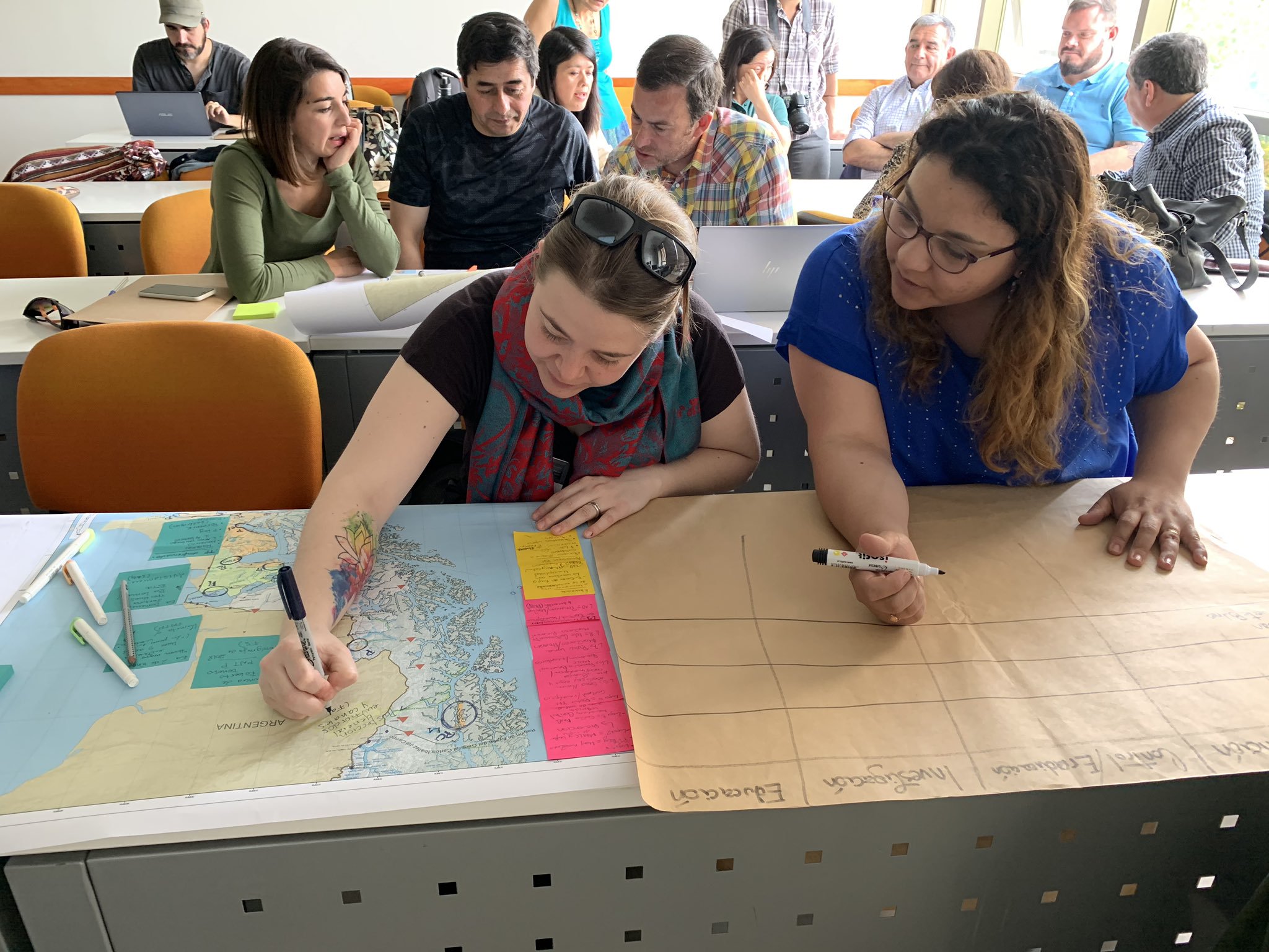 Catherine Dougnac (WCS) e Irene Ramírez (CONAF) en primera reunión de la Red de Colaboración para el Control del Visón.