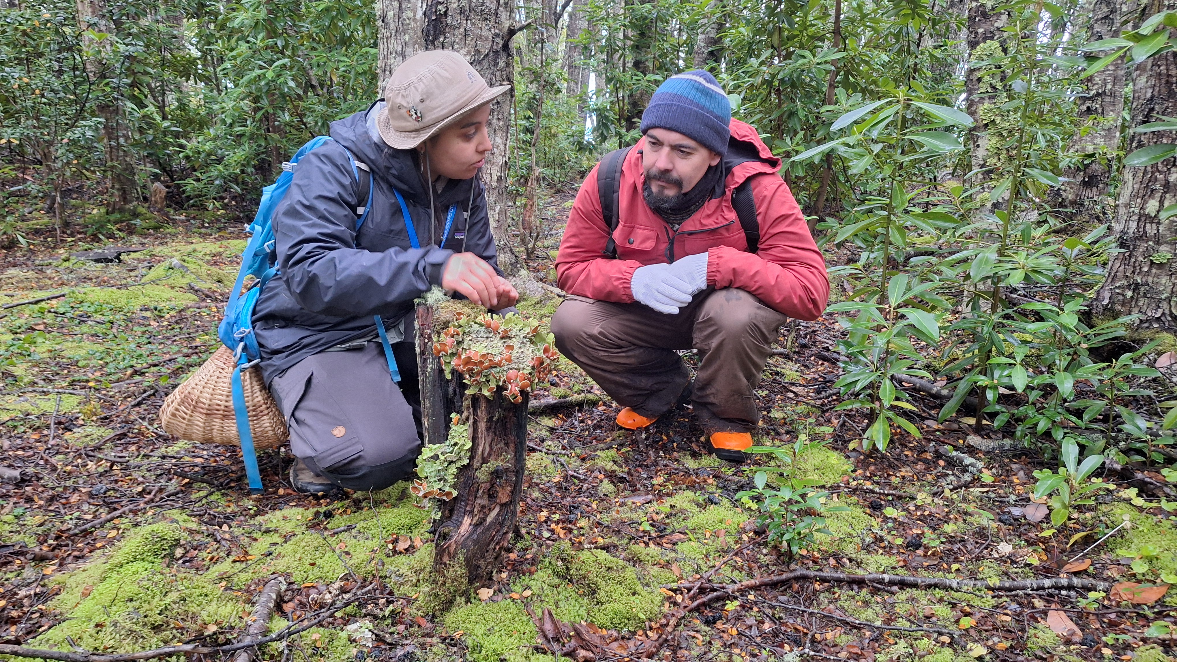 Durante la primera jornada, realizada en territorio comunitario, el equipo desarrolló un catastro y muestreo de diversas especies presentes en el bosque, identificando una alta diversidad de formas, colores y funciones ecológicas.