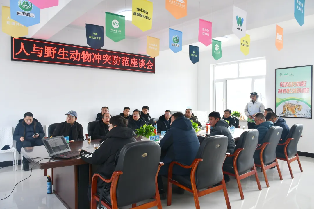 After the launch ceremony, a symposium on preventing human-wildlife conflict took place. Wang Aimin, the Chief Representative of WCS China, chaired the symposium. Dr. Zhai Bo from Beijing Forestry University presented a report on human-wildlife conflict. Participants then discussed ways to avoid such conflicts and offered feasible suggestions.