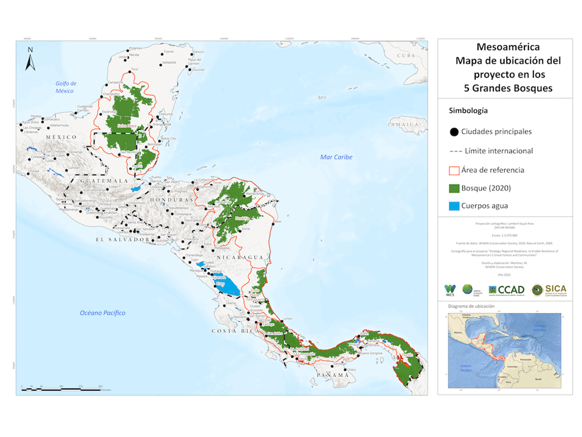 Mapa de ubicación de Los 5 Grandes Bosques de Mesoamérica por Marco Martínez (WCS)
