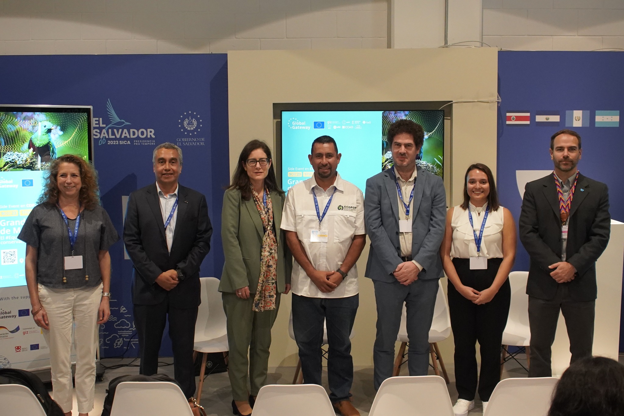 El panel del Programa Grandes Bosques de Mesoamérica se presentó en el Pabellón El Salvador-SICA durante la COP 28 en diciembre de 2023 con el Equipo Europa que lo implementa y el acompañamiento de los socios regionales.