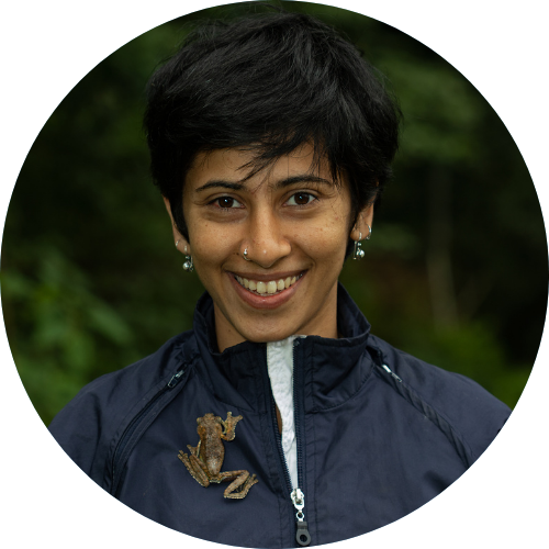 Vishnupriya joined WCS-India as a Research Assistant after completing her Master's in Wildlife Biology and Conservation from the National Centre for Biological Sciences and WCS-India. In 2022, she earned her PhD in Ecology from Penn State University, focusing on amphibian community structure in agroforest landscapes of the Western Ghats. Her expertise in quantitative ecology informs her use of modeling approaches such as community occupancy models and decision-making tools to promote biodiversity conservation alongside agricultural goals on private lands. Passionate about studying various species, including freshwater fishes, amphibians, and birds, she thrives in the challenging environments of the Western Ghats, finding joy in exploring its diverse landscapes despite the presence of leeches.