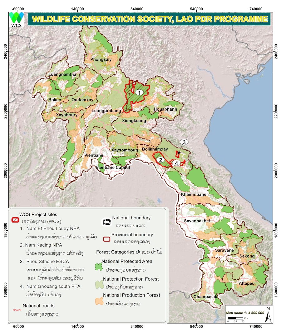 During the past 25 years, WCS Lao PDR has successfully implemented 23 projects with the Government of Lao PDR, supported by more than 30 donors. WCS began working in Lao PDR in the 1980s, surveying wildlife and habitats around the country to assist the government to create Lao PDR’s national protected area system. In the early 1990s, WCS documented wildlife and habitats in many of the newly created national protected areas and began supporting the government to train protected area managers, as well as raise awareness about illegal wildlife trade. WCS established a country office in Lao PDR in 1994.