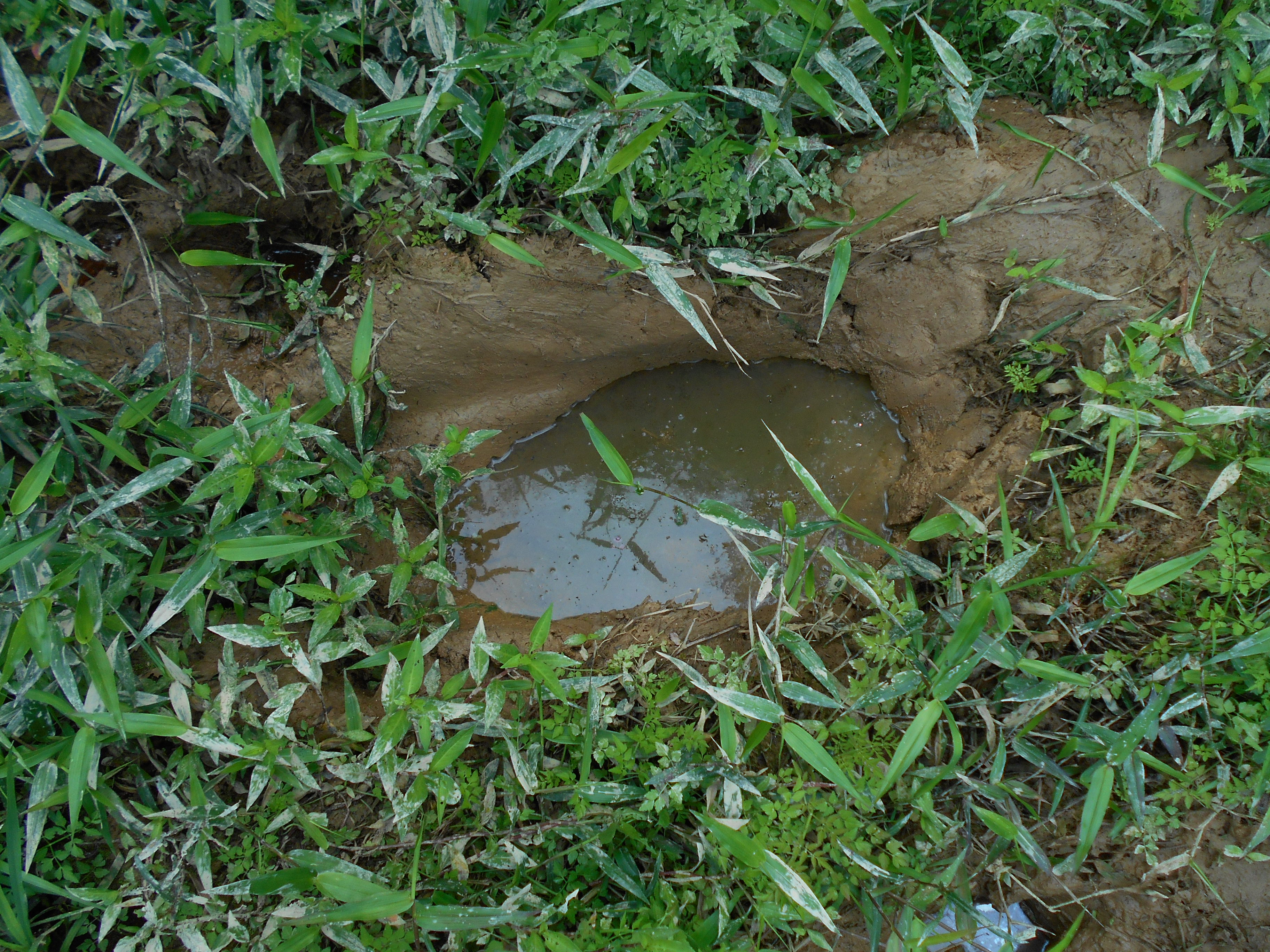 Elephants are “ecosystem engineers” that impact other species of plants and animals by changing the environment. For example, browsing elephants remove trees causing grasslands to expand, dung left in wetlands has an important fertilizing effect, and seeds passed through the digestive tract are more likely to germinate.  Elephants also deliver benefits to smaller fauna; browsing damages trees and creates cavities used by geckos as hiding places, and dung piles provide a home (and food) for many small animals. In a wildlife sanctuary in northern Myanmar, elephants trundling through the mud around seasonal wetlands leave deep tracks, some of which fill with water.  Owing to their immense bulk, trampling by elephants probably changes the soil structure, making the tracks better able to retain water during the lengthy dry season (October through May) when most wetlands contain no water.