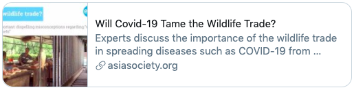 To reduce risk of future novel disease spillover with potential for devastating pandemics, we must address the commercial wildlife trade for human consumption. As WCS's Sarah Olson tells the Asia Society, our research has found an increased prevalence of coronaviruses in rodents along the wildlife trade in Vietnam, from trappers to markets to urban restaurants. Watch the video here: