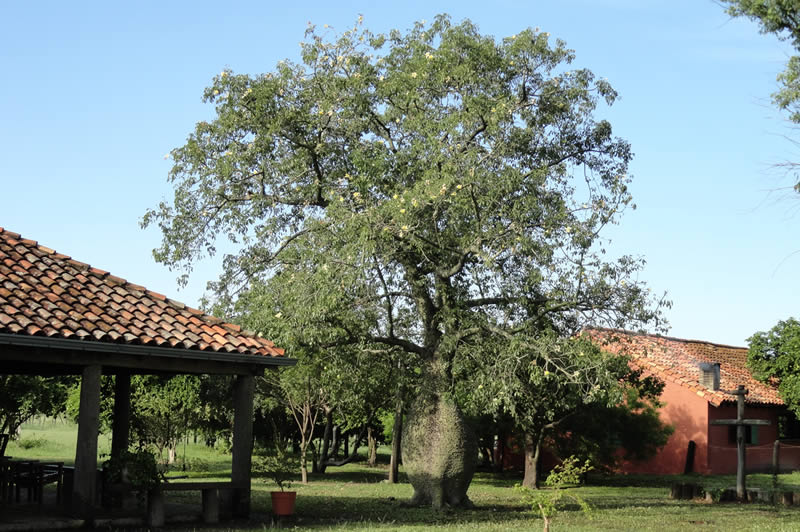 "Ceiba chodatii, conocido localmente como samu'u o palo borracho" es uno de los árboles más característicos de la región del Chaco en Paraguay, debido a su curiosa forma de botella.