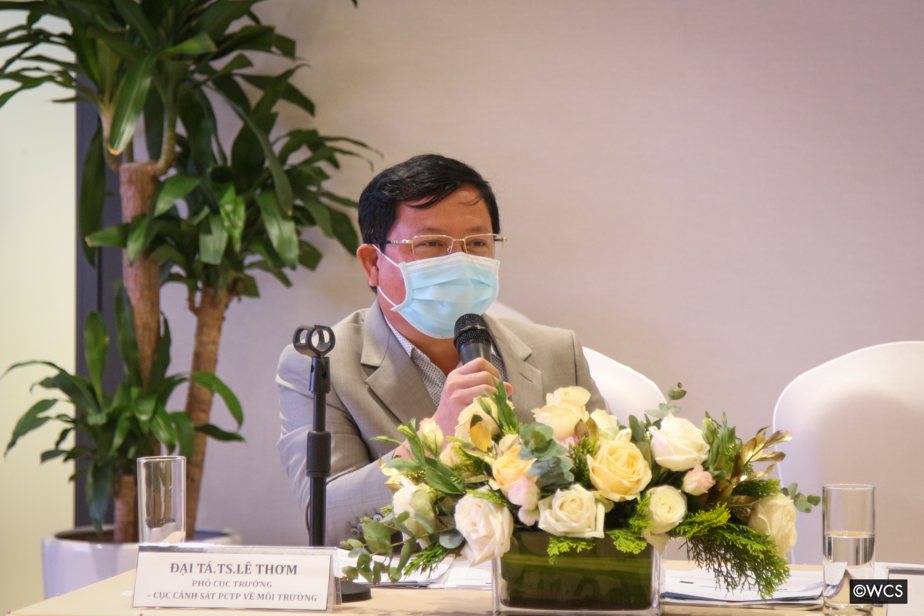 Đại tá, Tiến sỹ Lê Thơm – Phó Cục trưởng Cục Cảnh sát phòng, chống tội phạm về môi trường phát biểu tại hội thảo, Vĩnh Phúc, tháng 12/2021