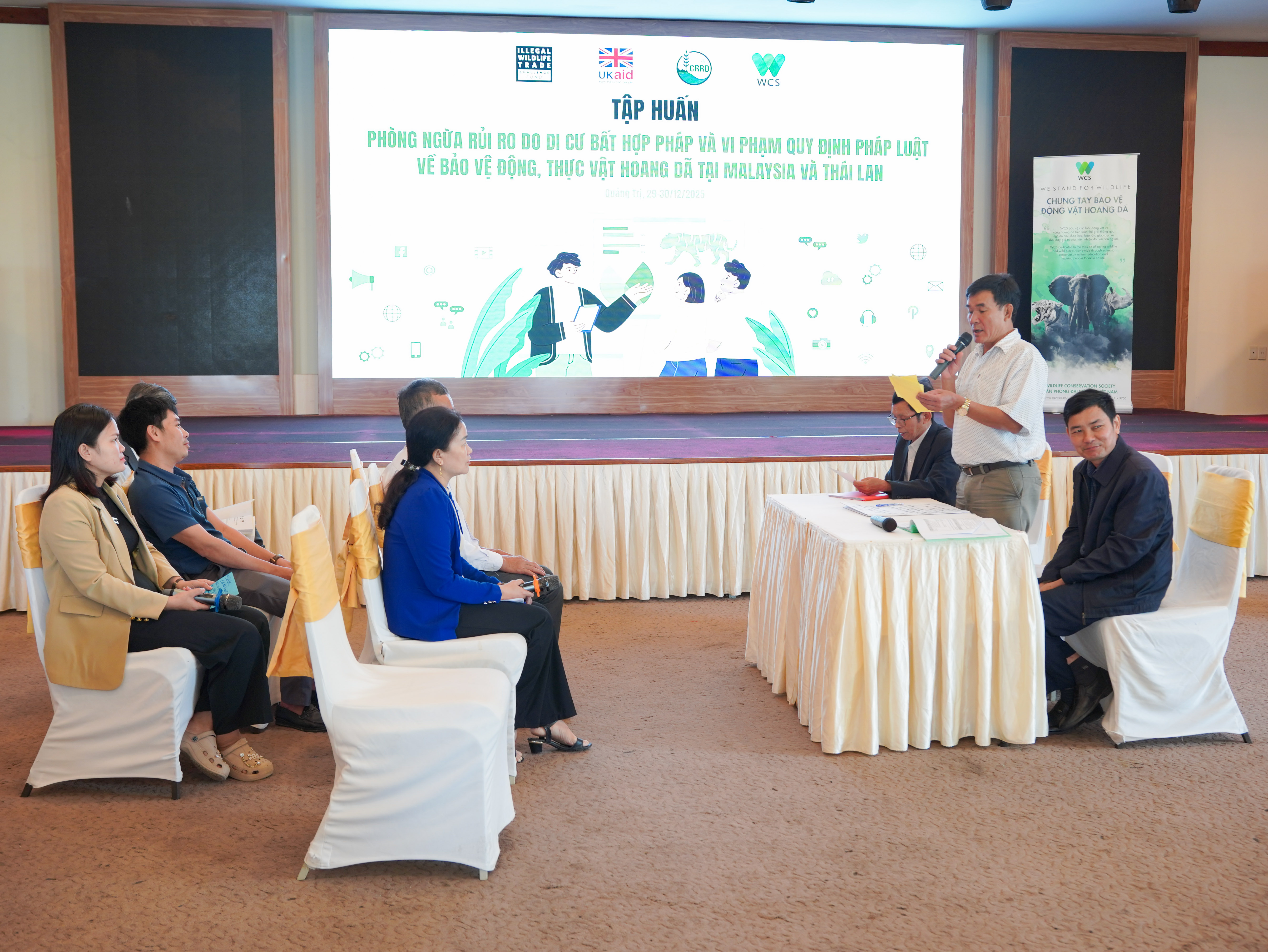 Phát biểu khai mạc, đại diện WCS Việt Nam và CRRD nhấn mạnh thực trạng một bộ phận công dân Việt Nam, trong đó có người dân đến từ tỉnh Quảng Trị, di cư bất hợp pháp và vi phạm quy định pháp luật về bảo vệ động, thực vật hoang dã (ĐTVHD) tại Malaysia, Thái Lan và vận chuyển trái phép các sản phẩm ĐTVHD về Việt Nam kéo theo nhiều rủi ro cho cá nhân, gia đình và cộng đồng.