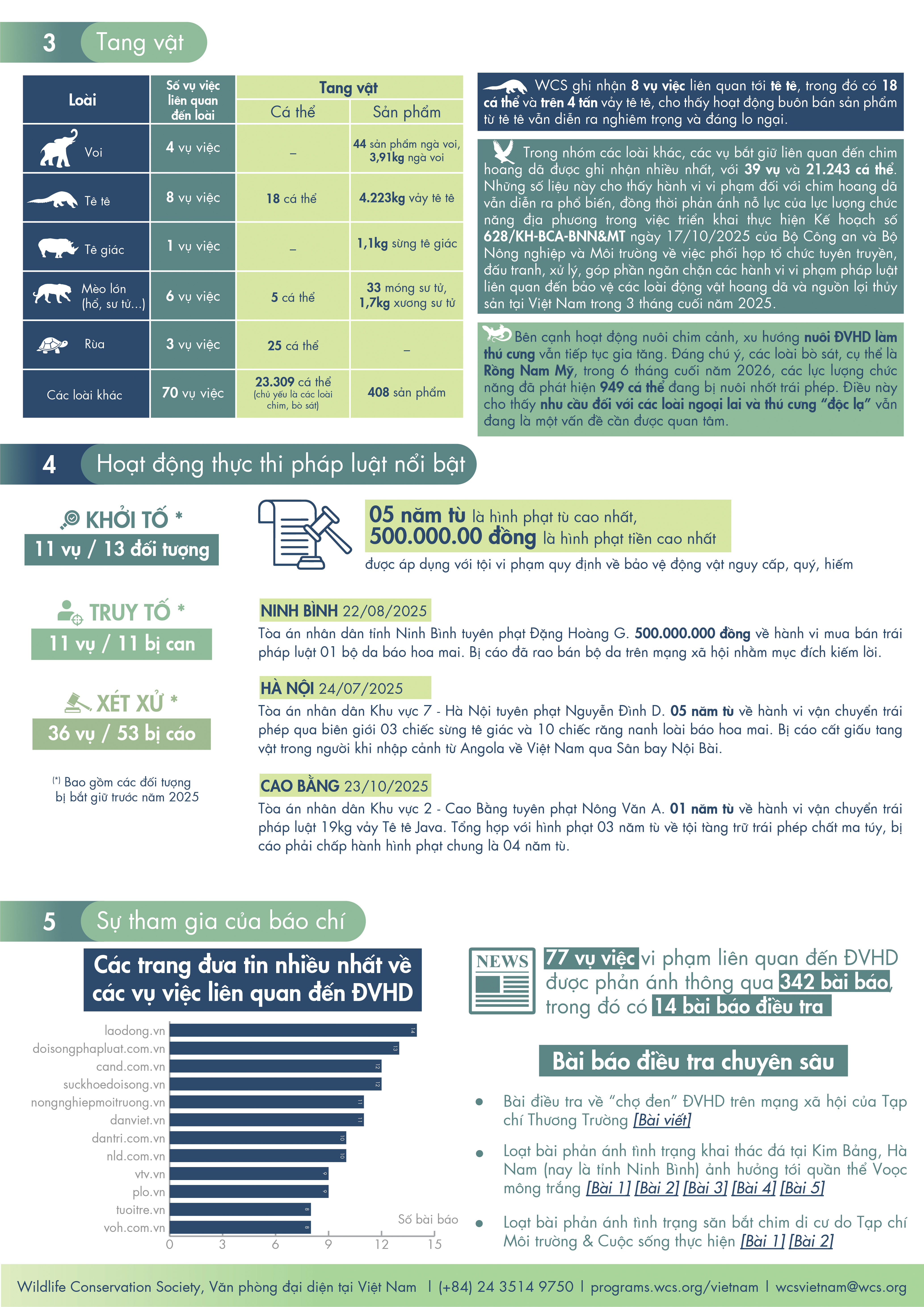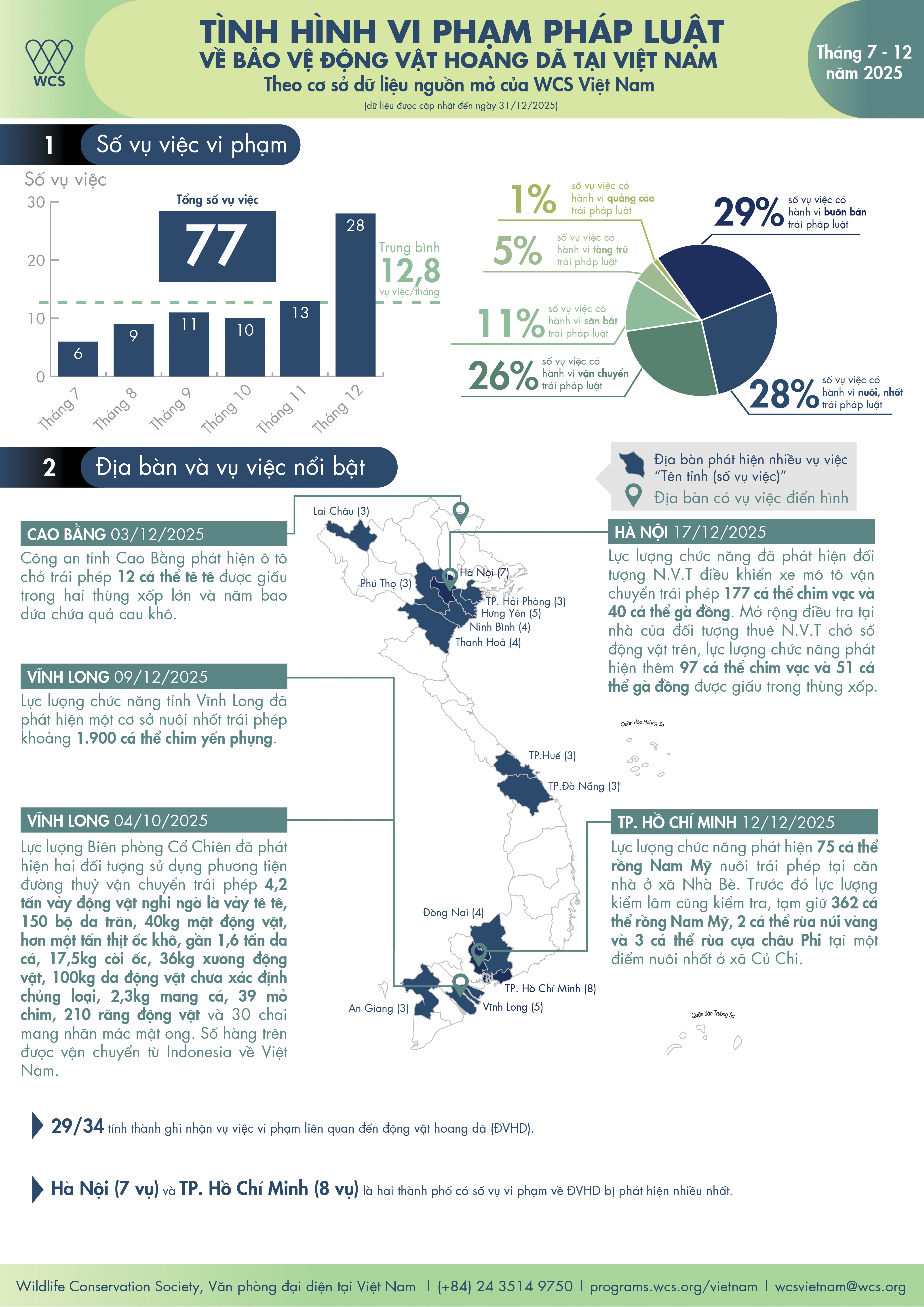 Tình hình vi phạm pháp luật về bảo vệ ĐVHD tại Việt Nam từ tháng 7-12 năm 2025
